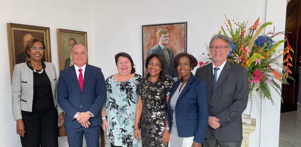 Foto ter gelegenheid van beëdiging in verband met benoeming tot lid van de Raad van Advies (RvA) op 11 januari 2024. Op de foto: De twee nieuwe leden mevr. drs. Josephine Provence en Ing. Gregory Damoen MSc vergezeld door de waarnemend Gouverneur mevr. M. Russel-Capriles, de leden van de Raad van Advies mevr. drs. Ch. Alberto en dr. J. Sybesma en de Secretaris van de Raad van Advies mevr. C. M. Raphaëla